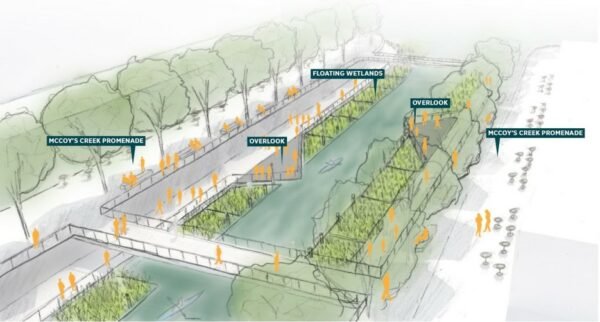 McCoys Creek Phase 2 Phase II: Phase two construction from Myrtle Avenue east to the to the St. Johns River is currently in design. Conceptual rendering of the daylighting of McCoys Creek at the former Florida Times-Union property along Riverside Avenue.